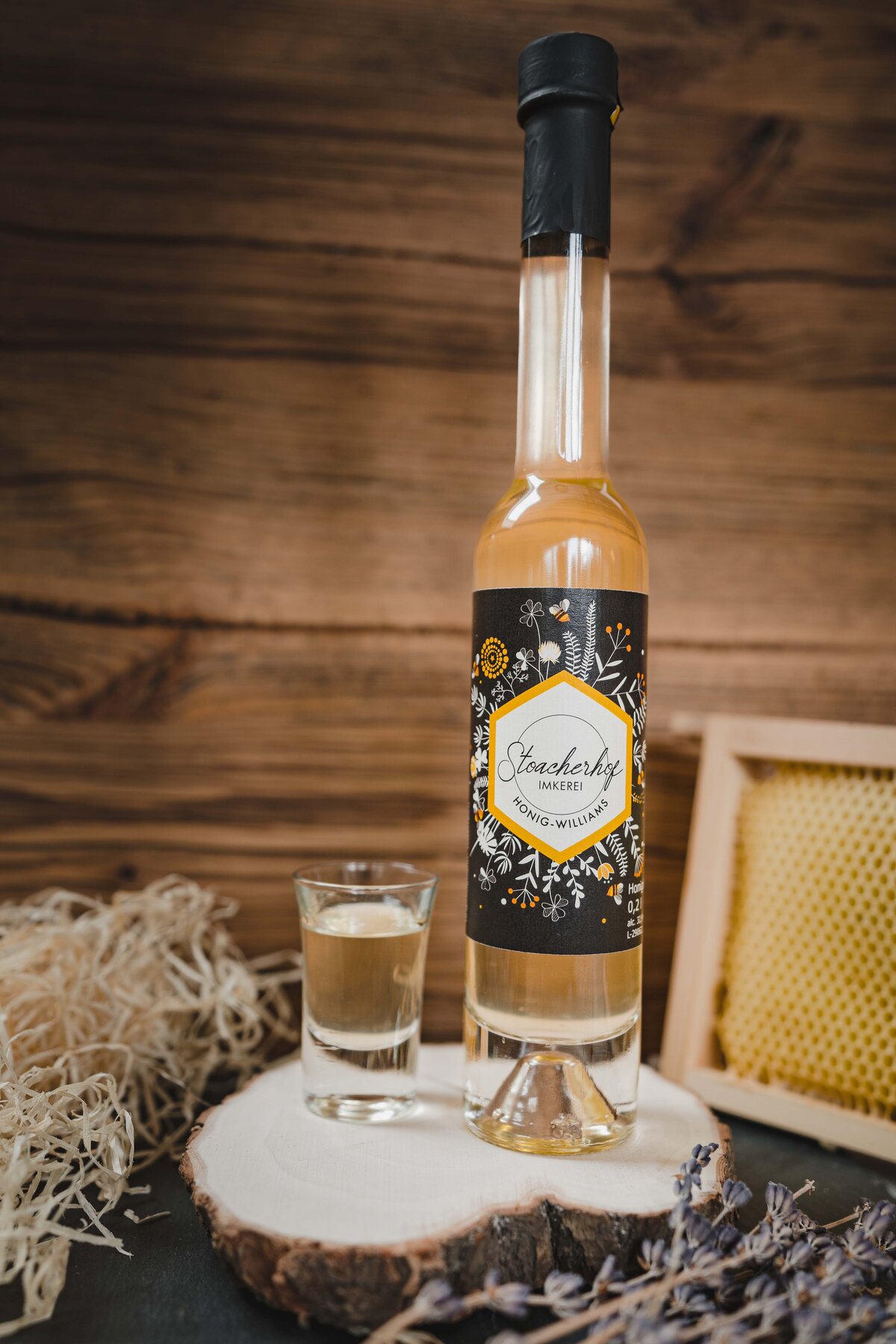Zu edlem Tiroler Williams wird der Stoacherhof Almhonig gemischt und gemeinsam reifen diese mehrere Monate zu einem besonderen Produkt.